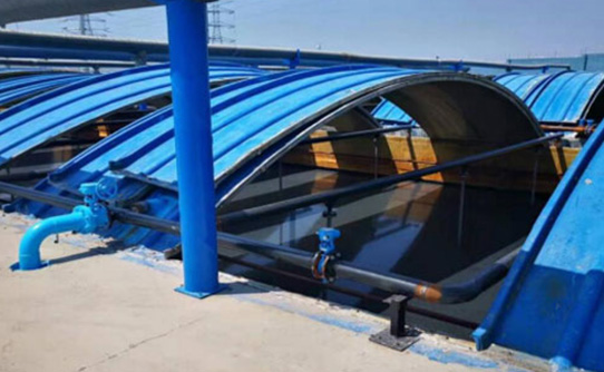 設(shè)計(jì)參數(shù)如下:化工生產(chǎn)廢水。一期項(xiàng)目曝氣池處理水量6240m³/d;二期項(xiàng)目的曝氣池處理水量17280m³/d。池頂封蓋,拱形玻璃鋼材質(zhì)。蓋頂有臭氣收集管道。
